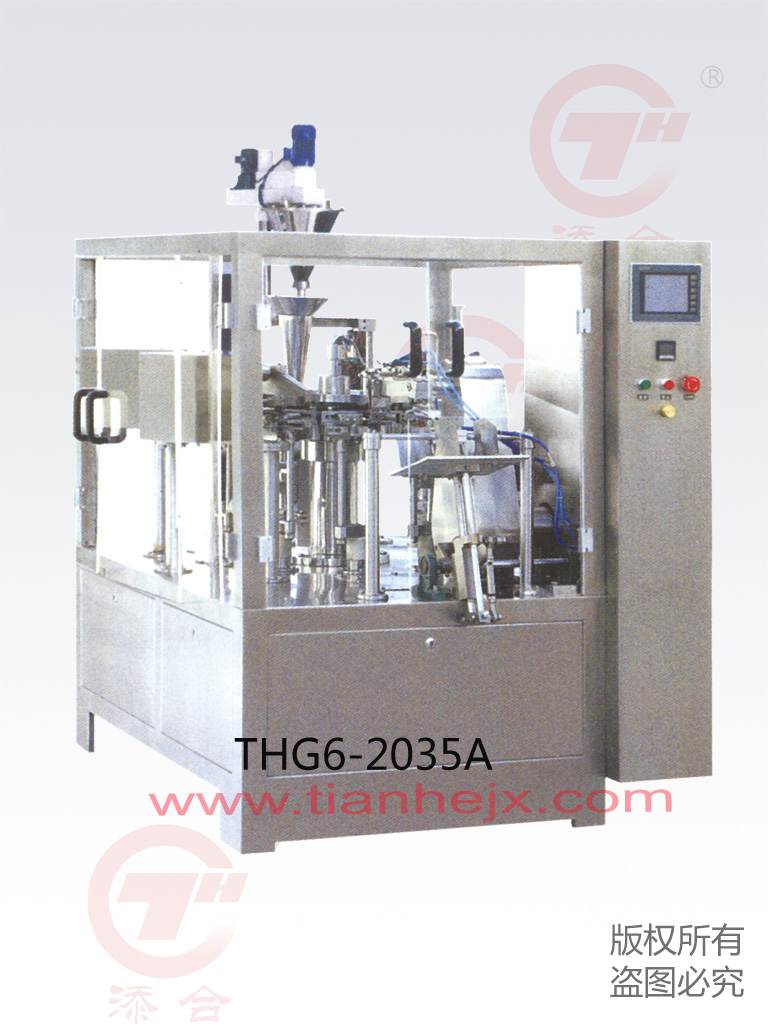 这套设备主要由预制袋全自动旋转包装机与螺杆秤配套而成,适用于奶粉、咖啡、调味品、添加剂等粉末物料的自动计量包装机。